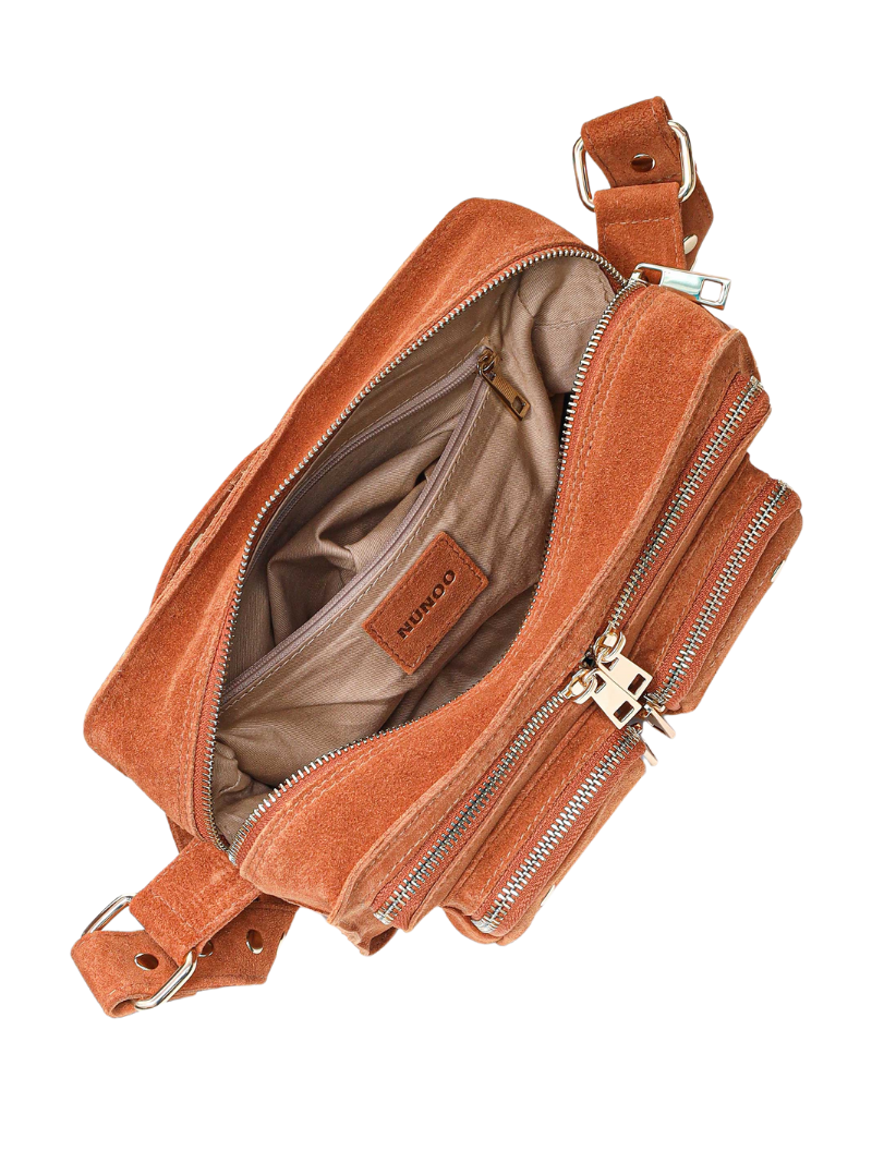 En el bolso Ellie de Núnoo cabe una pequeña botella de agua, el móvil, una tablet, las llaves, una cartera, un brillo de labios y mucho más. Cuenta con una correa larga ajustable y extraíble a conjunto con el bolso.
