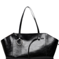 Bolso shopper maxi de piel en color negro y de estructura suave. Su nombre proviene de su diseño versátil, pensado también para escapadas rápidas.