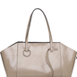 Cuenta con cierre de cremallera y forro interior de piel, ofreciendo un acabado tan práctico como sofisticado. Los anillos característicos de la marca se abren para funcionar también como enganches para llaves o charms.