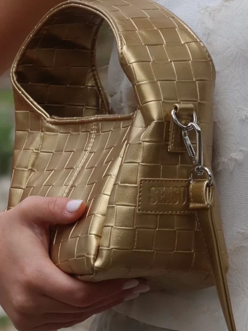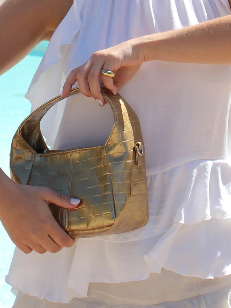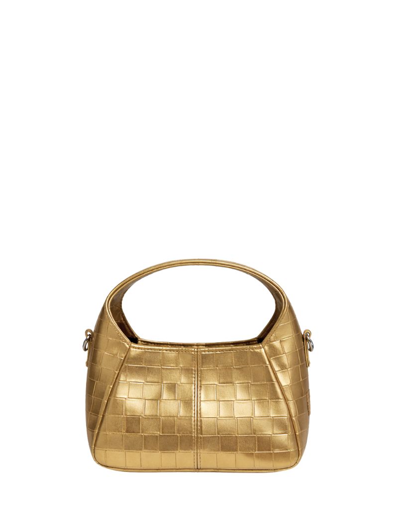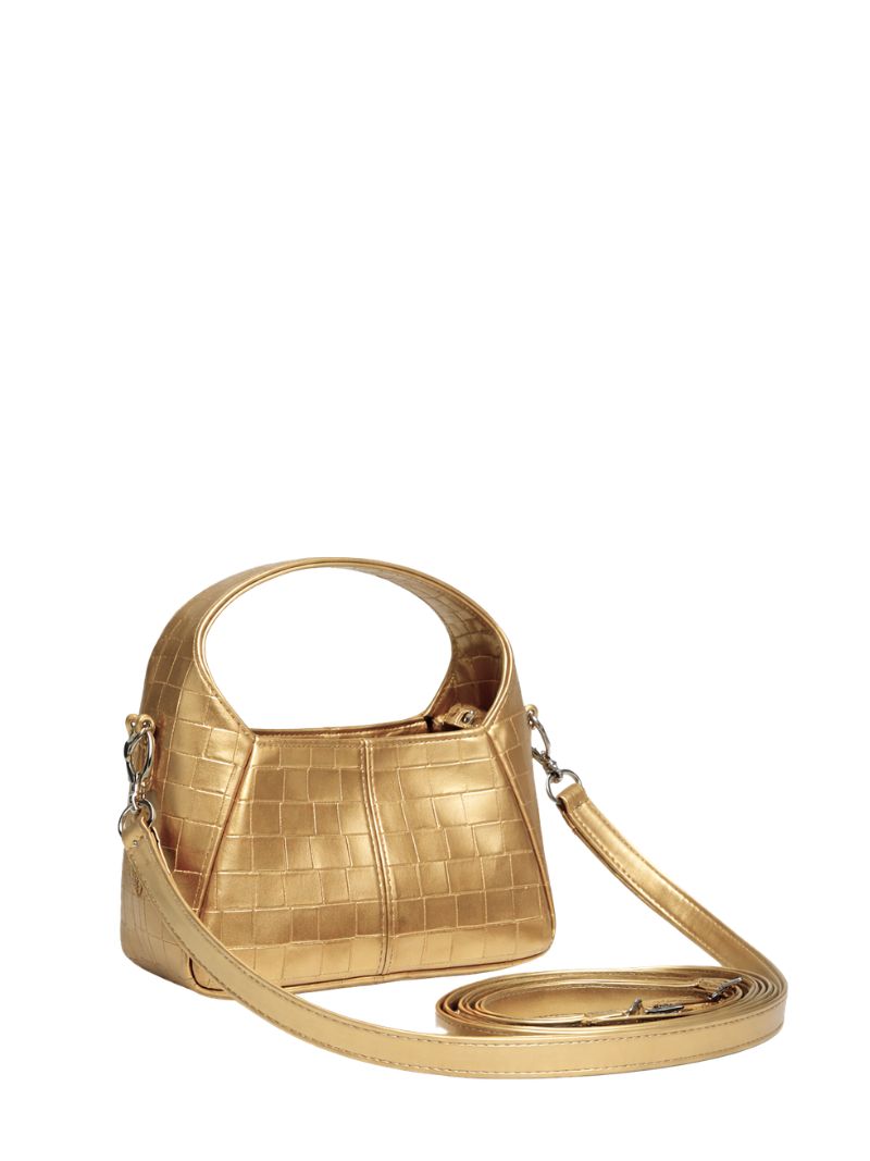 Este bolso mini de mano en color dorado es ese toque de estilo que eleva tu día a día. Diseño compacto y funcional. Cuenta con detalles pensados para acompañarte a todas partes: un cierre de botón seguro y una correa ajustable que te permite llevarlo cruzado o al hombro.