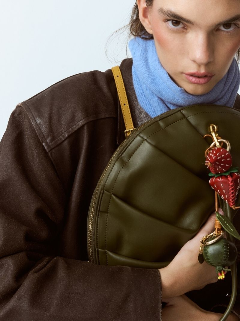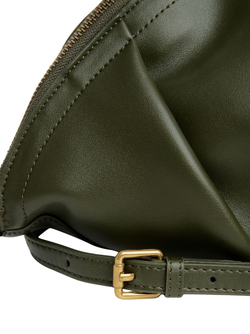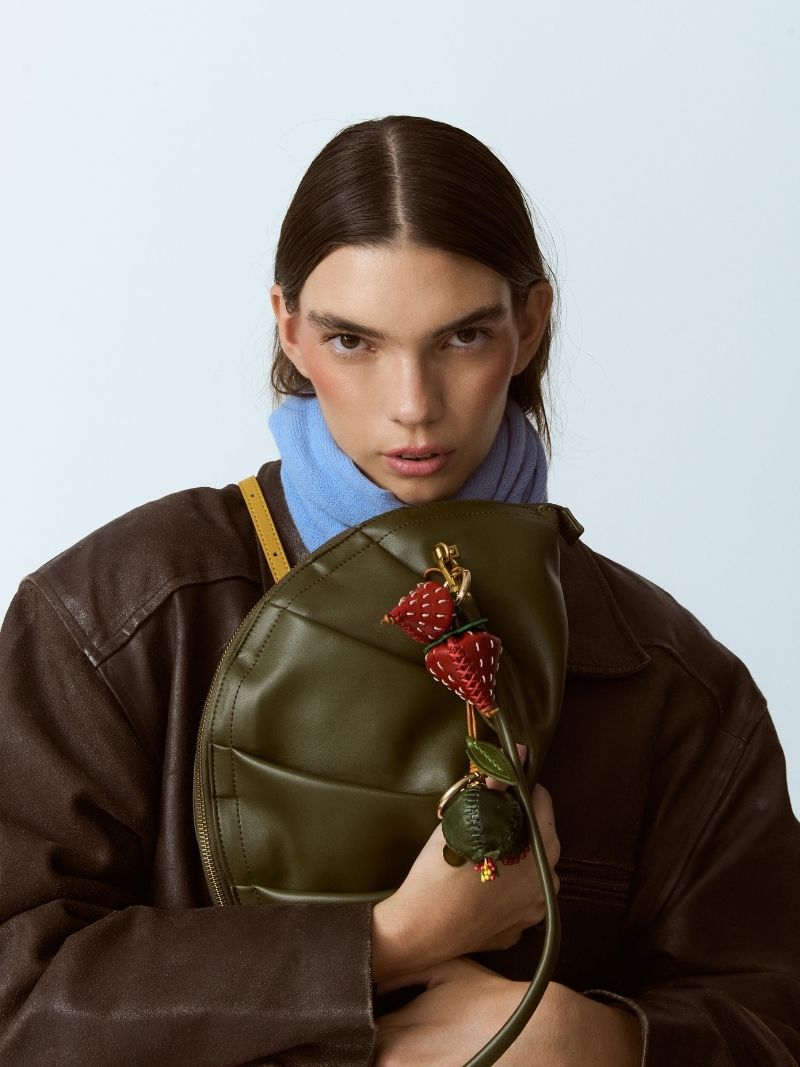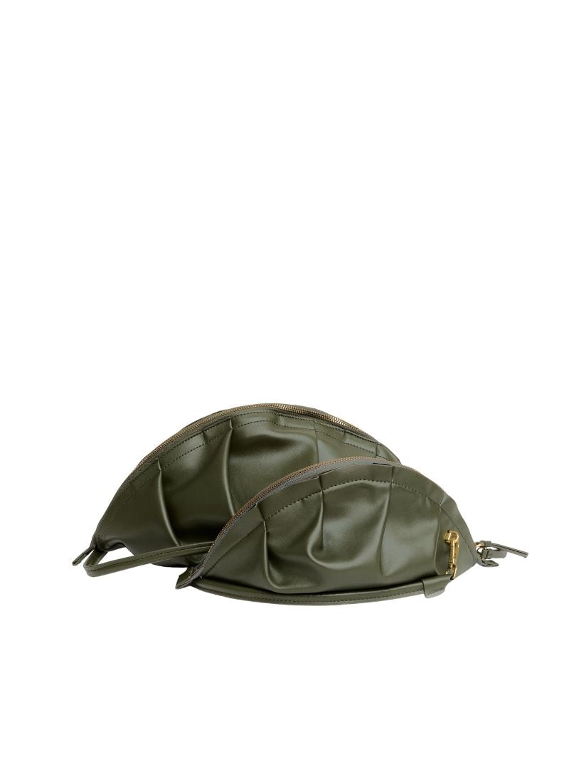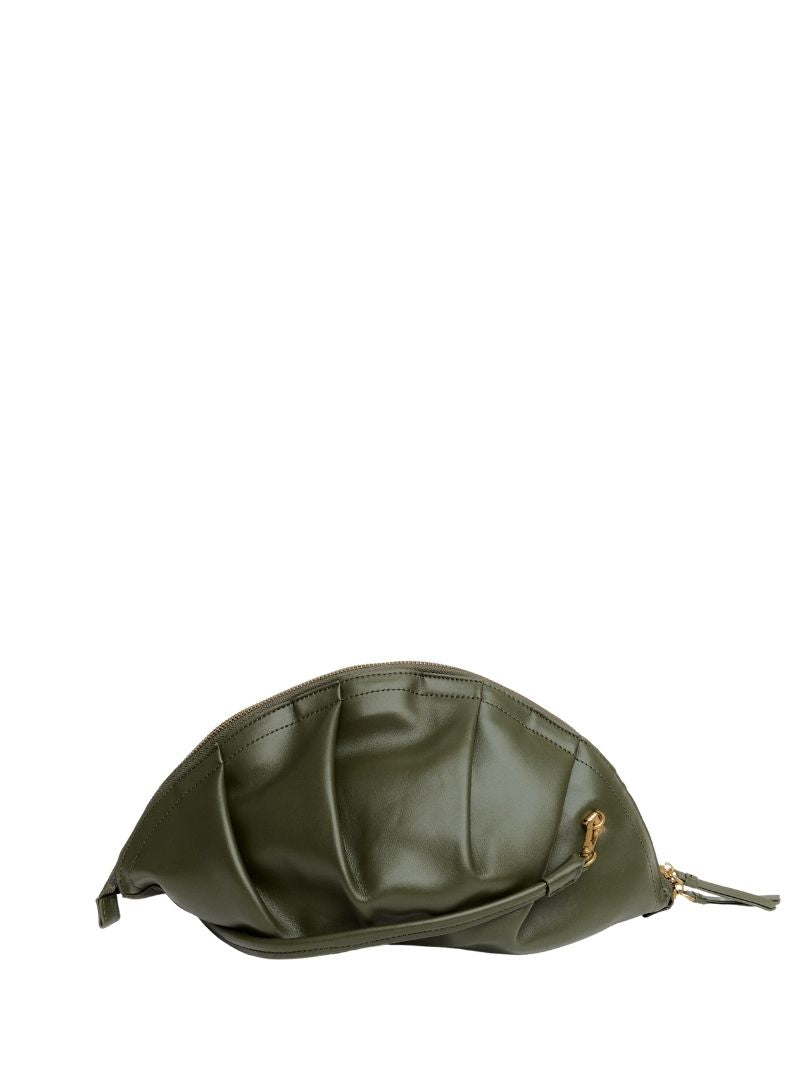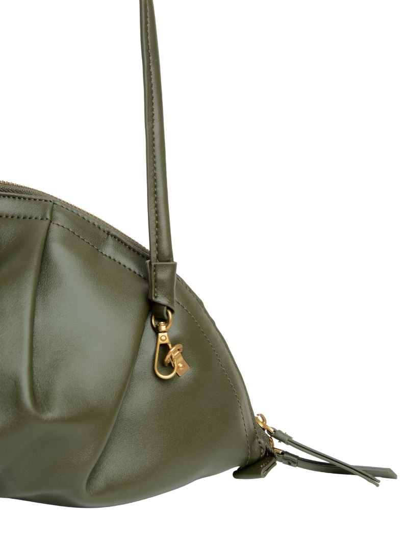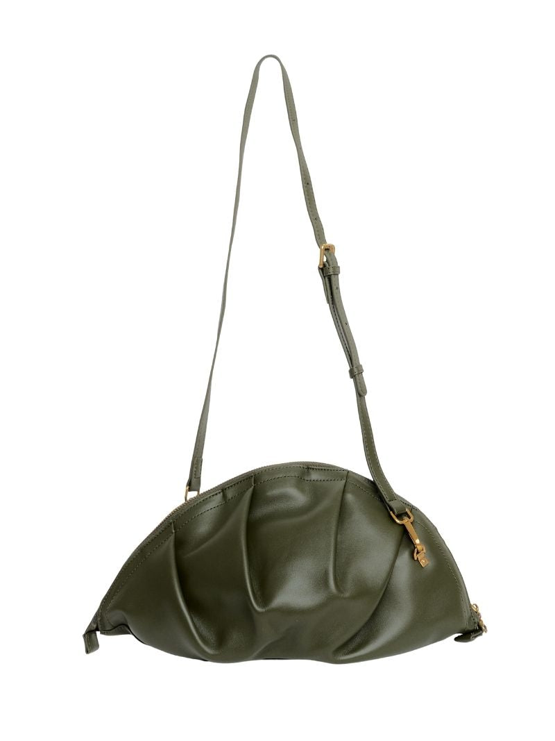Bolso verde, con una silueta suave y orgánica inspirada en la delicada forma de las gyozas. Su diseño estructurado y minimalista convierte este modelo en una pieza especial que eleva cualquier look, tanto en el día a día como en ocasiones más especiales.