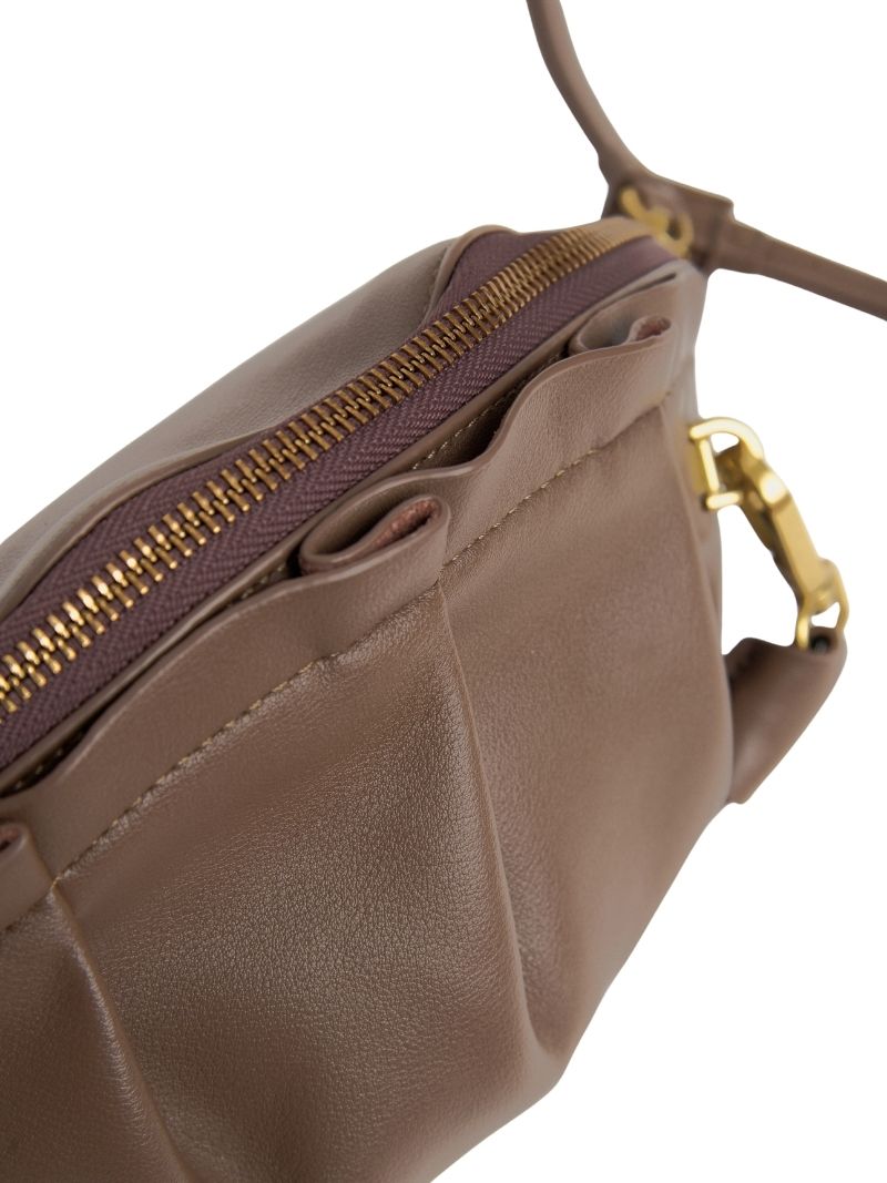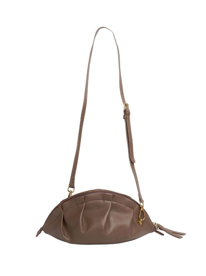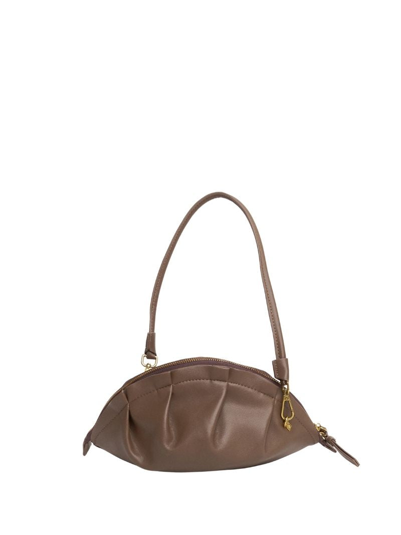 Bolso mediano de hombro con una silueta suave y orgánica inspirada en la delicadeza de las gyozas. Su diseño estructurado y fruncido aporta carácter y convierte este modelo en una pieza especial capaz de elevar cualquier look, desde los más casuales hasta los más sofisticados.