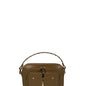 Bolso pequeño de piel de color beige, con las cremalleras y las tachuelas doradas. El material Florence es el más exclusivo de la marca por lo que es una piel más rígida de lo habitual y tiene los bordes más marcados y más capacidad.