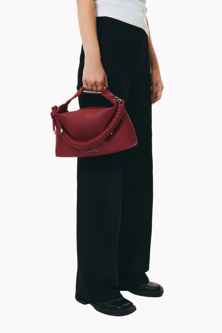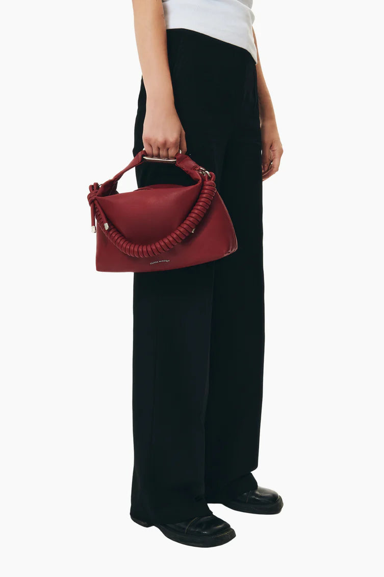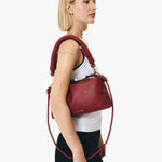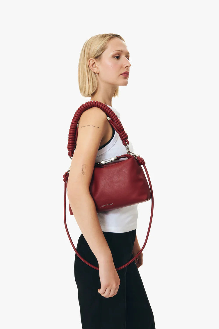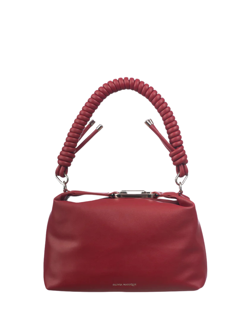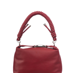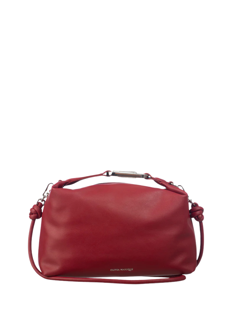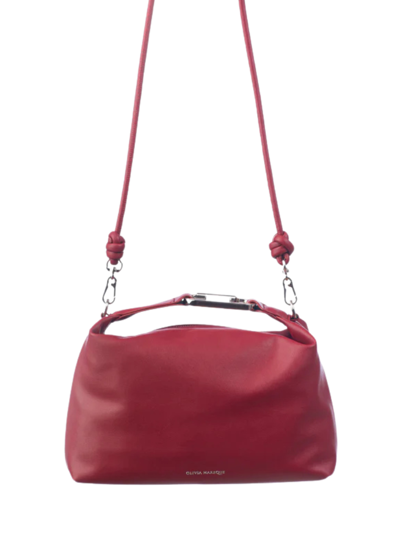 Bolso de hombro, bandolera o de mano mediano de piel vegana en rojo. Incluye cadena rizada de hombro y cadena nudo bandolera.