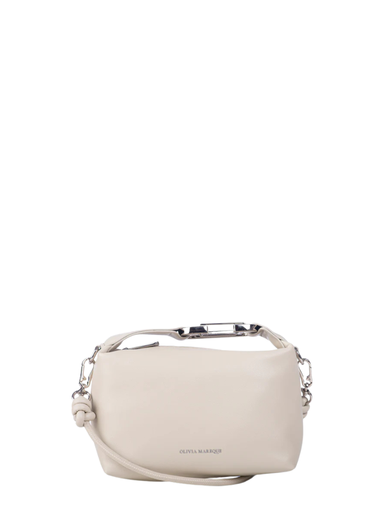 Bolso cruzado de bandolera o de mano pequeño de piel vegana en color blanco roto.