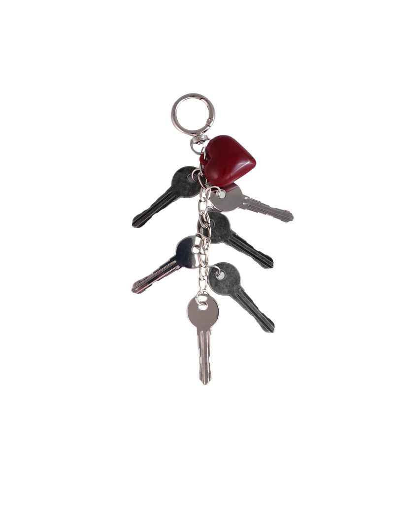 El Keydrop Charm es un charm con base metálica tipo cadena. Incluye varias llaves metálicas colgantes y un dije en forma de corazón rojo de acabado brillante. Su diseño combina elementos cotidianos con un detalle gráfico, creando una pieza con estética utilitaria y un toque decorativo. Pensado para engancharse fácilmente a bolsos, mochilas o llaveros, este charm es perfecto para sumar un guiño urbano y diferente a tus accesorios.