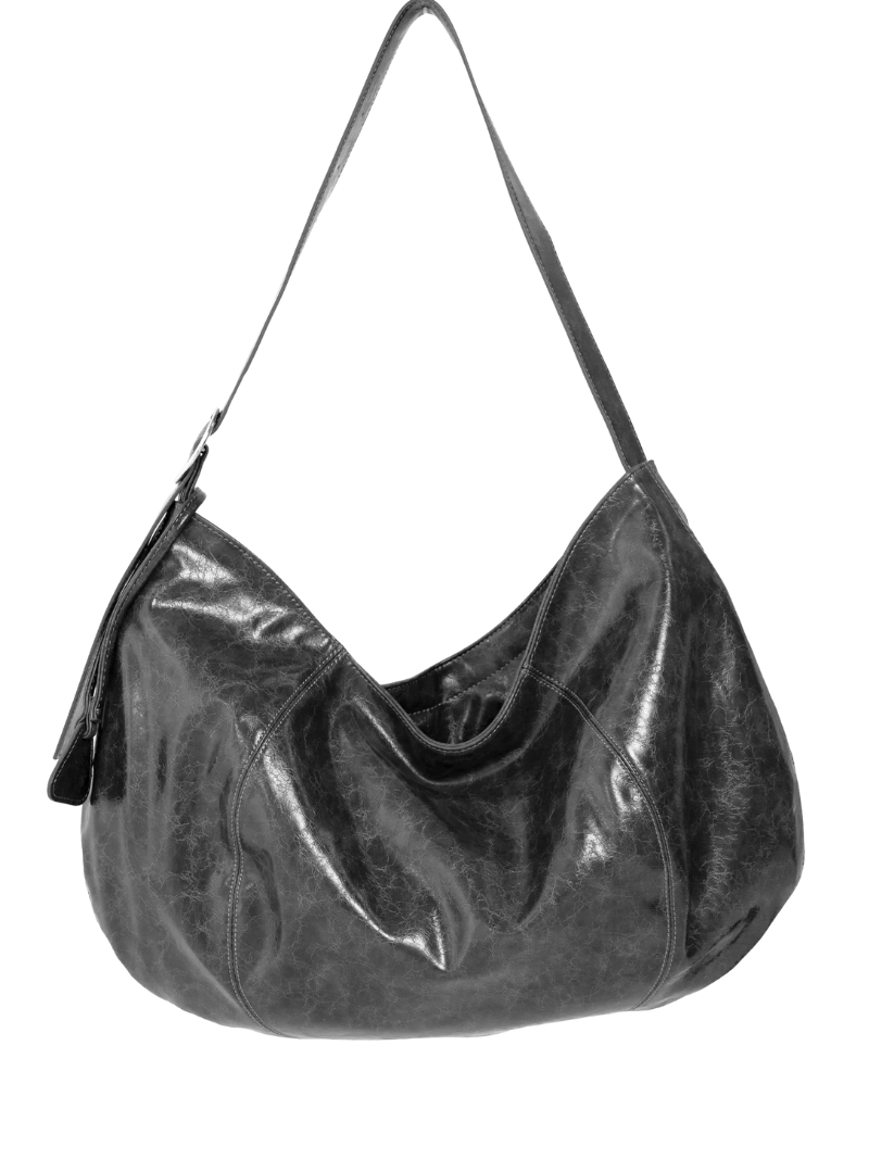 Bolso grande de napa vegana en color girs, pensado para acompañarte en el día a día con un formato amplio y práctico. Cuenta con una asa ajustable para llevarlo al hombro o cruzado, y su silueta flexible se adapta cómodamente al cuerpo. Cierre con cremallera.