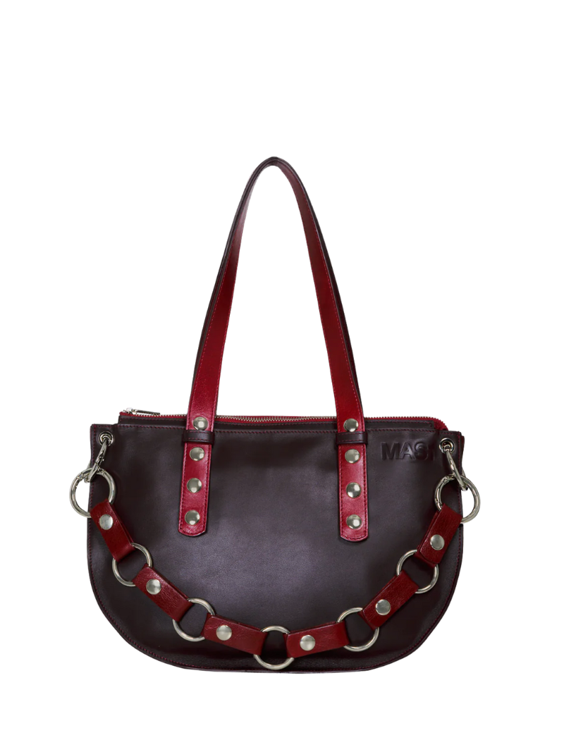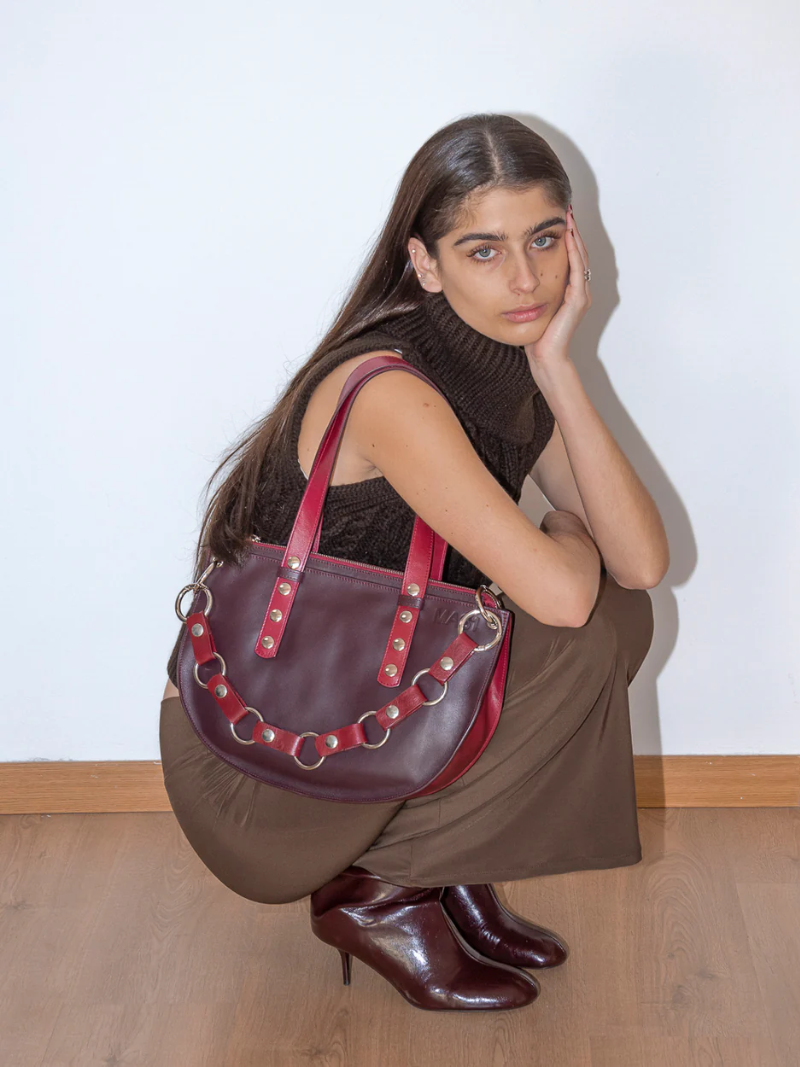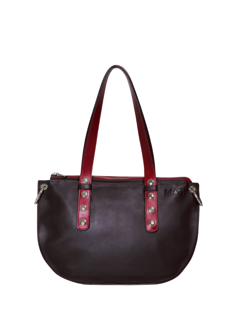 El bolso Mini Andy granate de MAS1  es un bolso elegante y funcional, fabricado en piel de vacuno certificada LWG. Con un diseño en tonos granate y burdeos, cuenta con asas ajustables y extraíbles para llevarlo al hombro o cruzado. El logo estampado en la parte delantera y el asa decorativa le dan un toque exclusivo. Perfecto para quienes buscan un bolso compacto y versátil. Bolso perfecto para el día a día . Caben libros, botellas, tuppers de comida, paraguas, Ipad, etc.