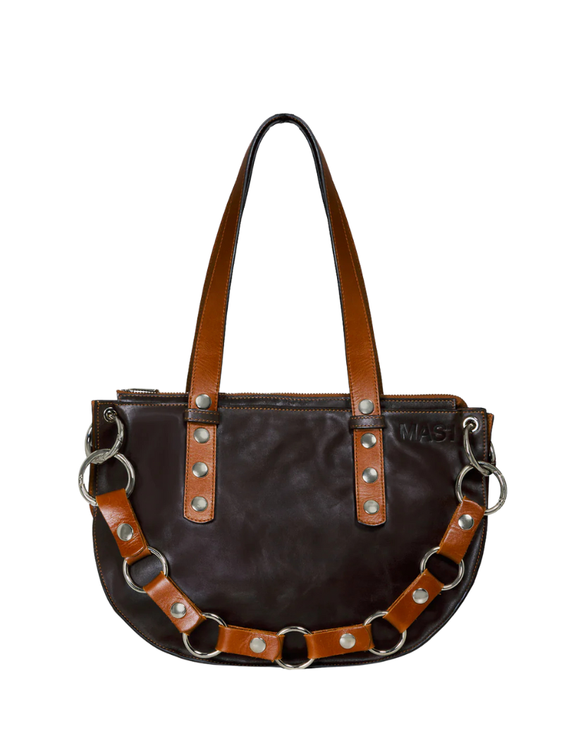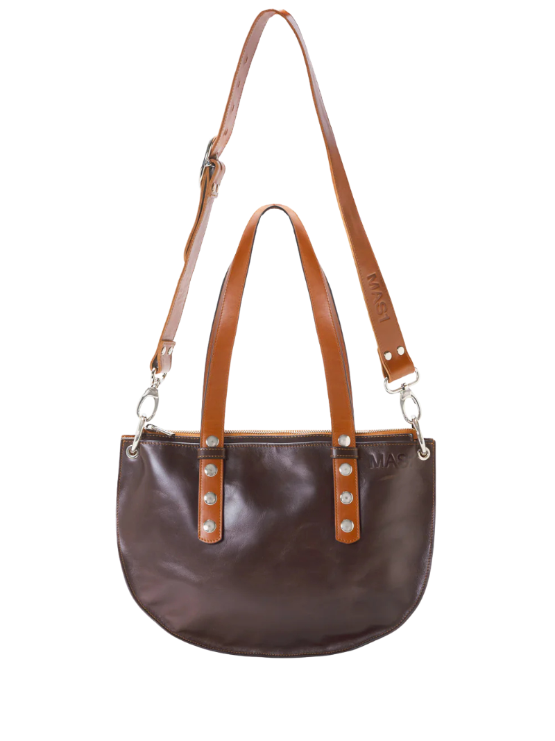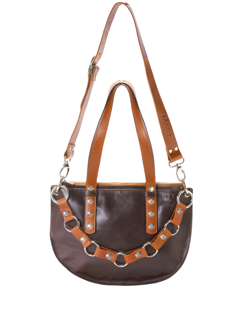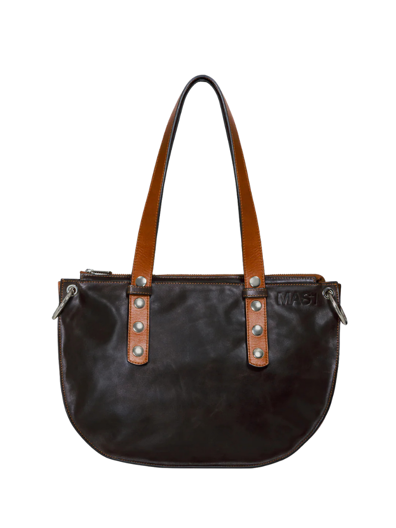 El bolso Mini Andy chocolate de MAS1  es un bolso elegante y funcional, fabricado en piel de vacuno certificada LWG. Con un diseño en tonos marrones y chocolate, cuenta con asas ajustables y extraíbles para llevarlo al hombro o cruzado. El logo estampado en la parte delantera y el asa decorativa le dan un toque exclusivo. Perfecto para quienes buscan un bolso compacto y versátil. Bolso perfecto para el día a día . Caben libros, botellas, tuppers de comida, paraguas, Ipad, etc.