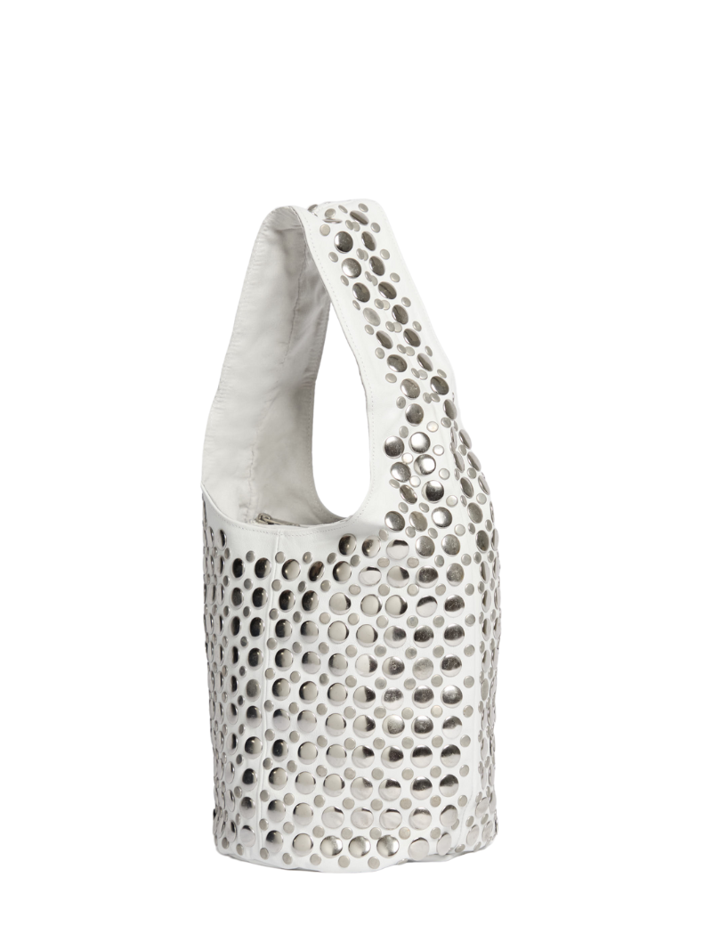 El bolso Noosa blanco pequeño es el accesorio perfecto para quienes desean destacar con un estilo atrevido. Fabricado en piel de alta calidad, su vibrante tono azul eléctrico se complementa con detalles de tachuelas metálicas plateadas, creando un look edgy y sofisticado. Su tamaño compacto lo convierte en el aliado ideal para llevar lo esencial con estilo y elegancia. Este bolso es perfecto para añadir un toque audaz que eleva cualquier look, fusionando modernidad y personalidad en un solo accesorio.