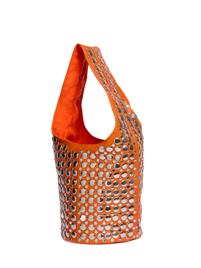 El bolso Noosa naranja mediano es el accesorio perfecto para quienes desean destacar con un estilo atrevido. Fabricado en piel de alta calidad, su vibrante tono azul eléctrico se complementa con detalles de tachuelas metálicas plateadas, creando un look edgy y sofisticado. Su tamaño compacto lo convierte en el aliado ideal para llevar lo esencial con estilo y elegancia. Este bolso es perfecto para añadir un toque audaz que eleva cualquier look, fusionando modernidad y personalidad en un solo accesorio.