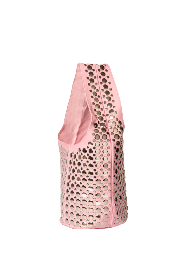 El bolso Noosa rosa pequeño es el accesorio perfecto para quienes buscan un toque audaz en su look. Fabricado en piel de alta calidad, su vibrante tono rosa se realza con tachuelas metálicas plateadas, creando un look edgy y sofisticado. Su tamaño compacto lo convierte en el compañero ideal para llevar lo esencial con estilo y personalidad. Este bolso es perfecto para quienes desean añadir un toque moderno que eleve cualquier outfit y resalte su sentido de la moda.
