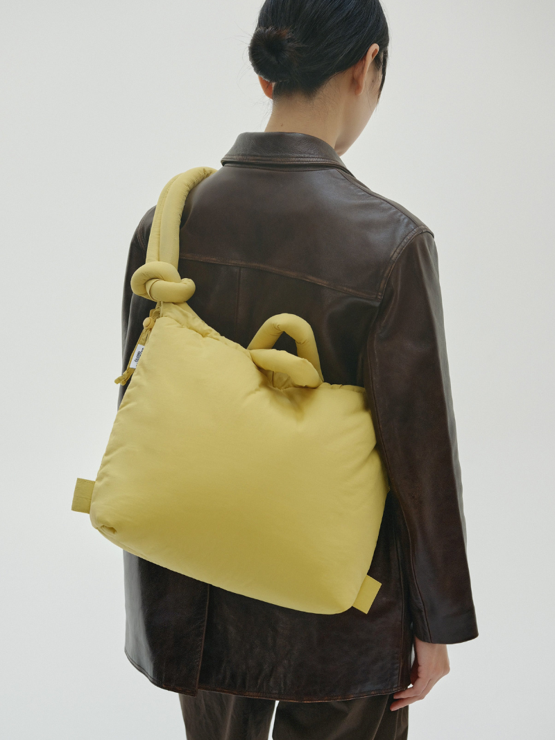 Bolso grande acolchado color lima, ligero (solo 380g) y ultra cómodo. Ideal para el día a día.