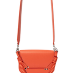 Bolso cruzado o de hombro pequeño de piel vegana en color naranja. Destaca por su diseño rígido y su cierre de solapa con dos imanes.