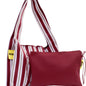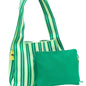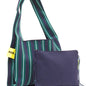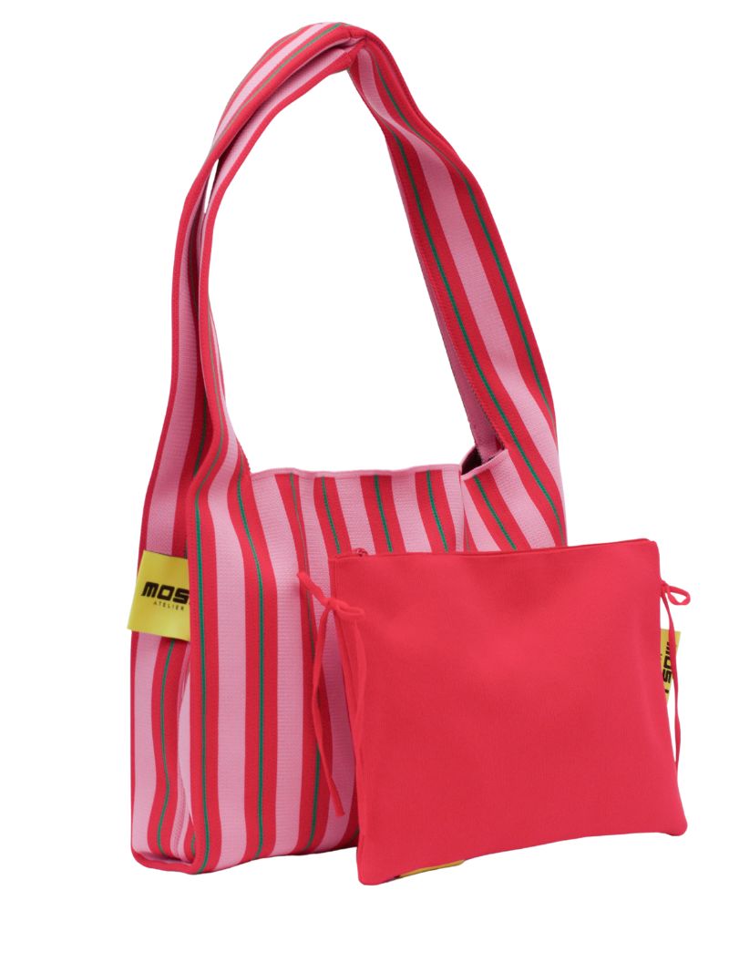 Bolso grande cruzado con estampado de rayas en rosa, rojo y verde. Fabricado en un material elástico, resistente y de gran durabilidad, este bolso es ligero, cómodo de llevar y fácil de lavar, ideal para el uso diario.