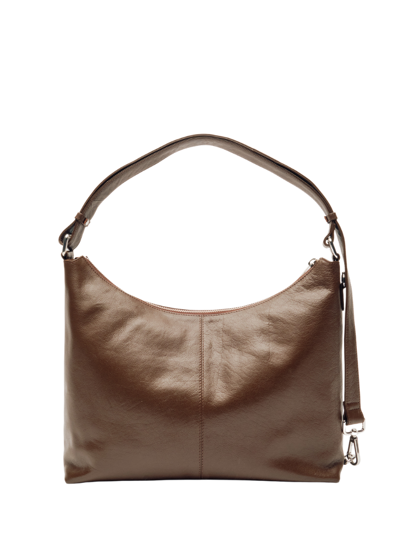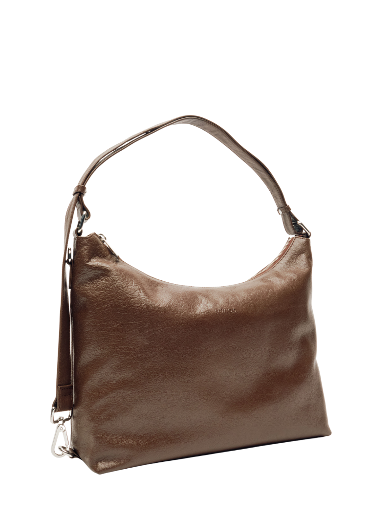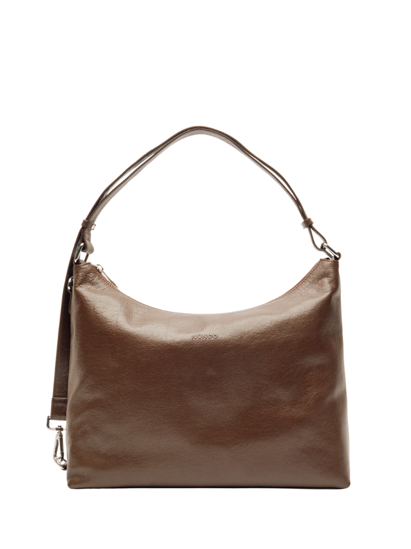 Bolso de hombro de piel de color marrón. El modelo Rio tiene un diseño clásico con un toque elegante que lo hace fácil de combinar. Cuenta con un compartimento principal y cierre de cremallera para mantener tus cosas seguras.