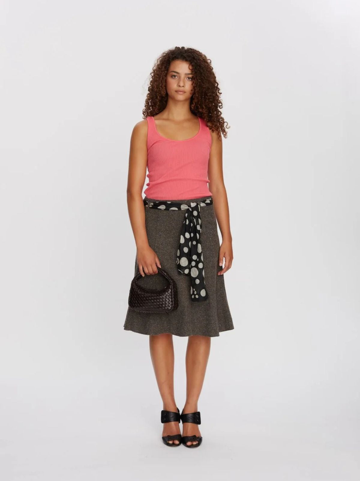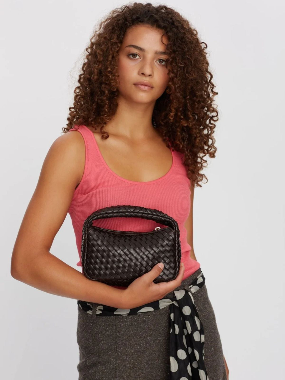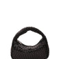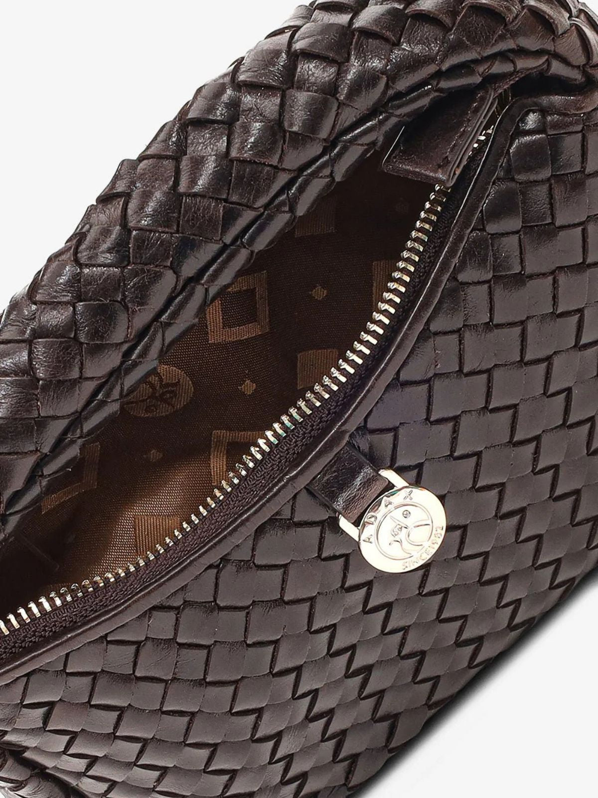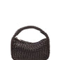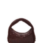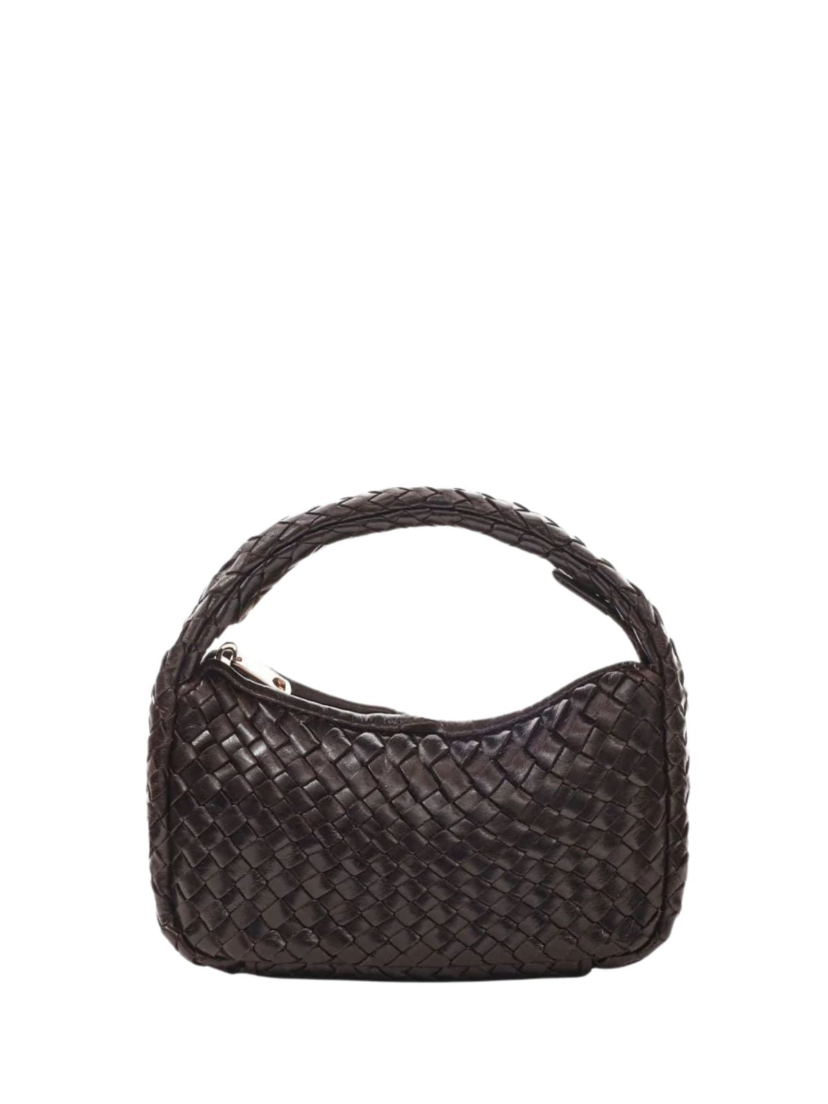 Bolso pequeño elegante con diseño tejido en piel marrón oscuro, perfecto para elevar cualquier look. Incluye dos correas desmontables: una corta para llevar al hombro o en la mano, y una correa larga ajustable para llevar cruzado.