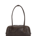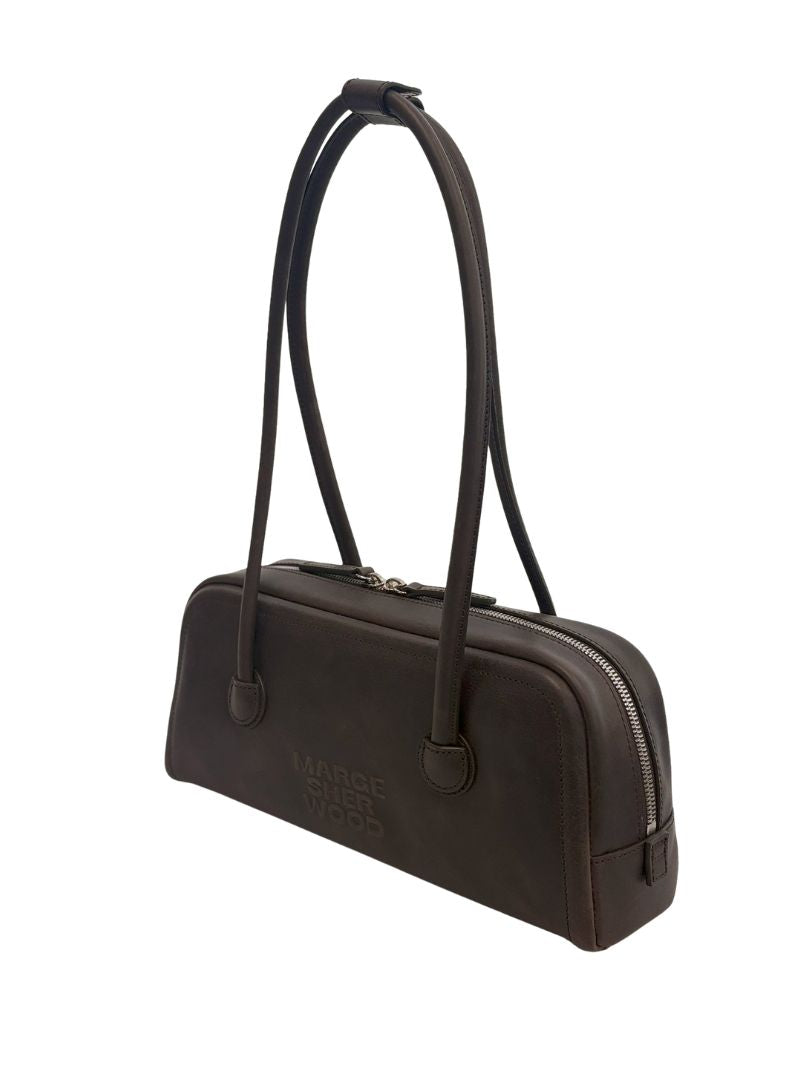 Bolso de hombro de cuero en color marrón, con el logotipo de la marca grabado en la parte frontal y diseñado en la clásica forma baguette. El bolso cuenta con un bolsillo interior y un cierre de doble cremallera.