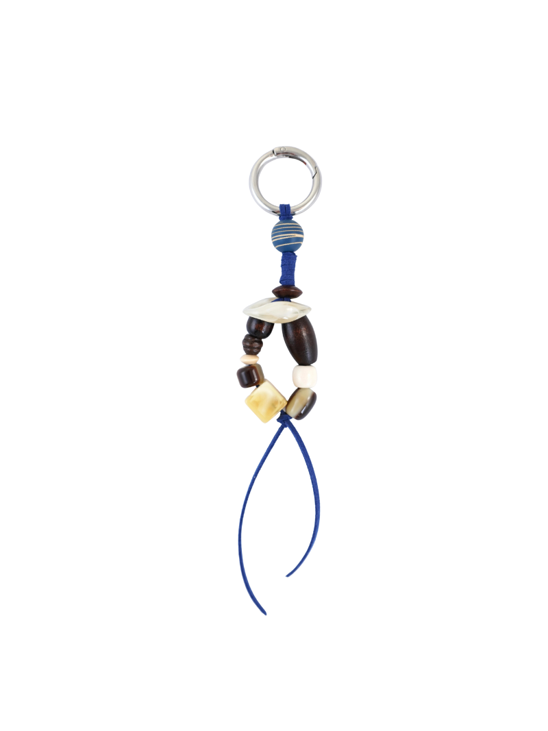Charm pequeño artesanal de cuentas, diseñado con una mezcla de piezas en tonos madera, crema y chocolate que aportan un toque natural y cálido a cualquier bolso.