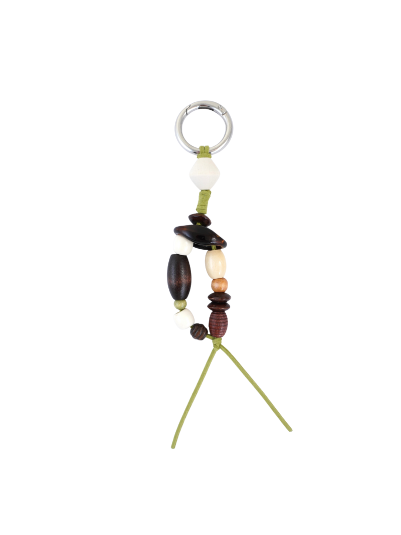 Charm pequeño artesanal de cuentas, diseñado con una mezcla de piezas en tonos madera, crema y chocolate que aportan un toque natural y cálido a cualquier bolso.
