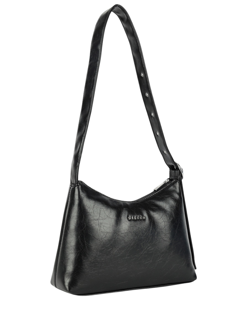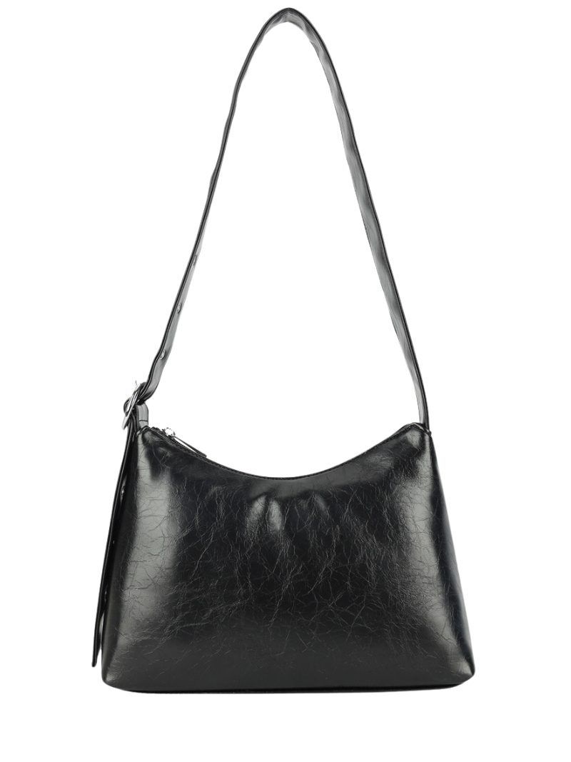 Bolso mediano en color negro que puede llevarse tanto al hombro como cruzado gracias a sus correas largas y ajustables. Su silueta inspirada en los 90 es la definición perfecta de un bolso básico: ese al que recurres una y otra vez.